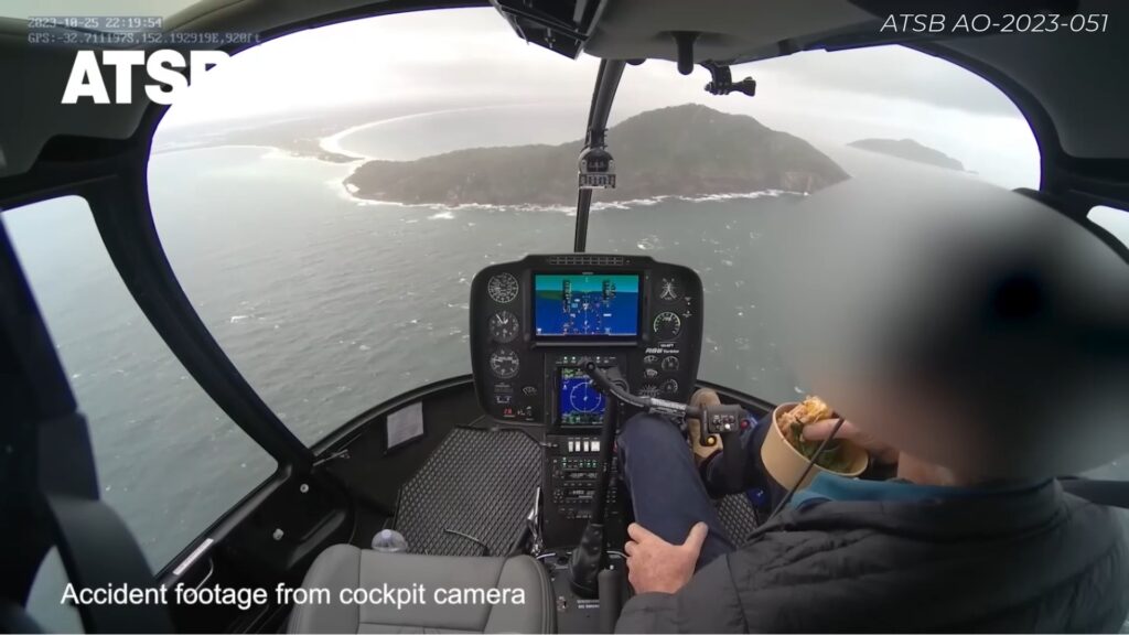 In the October 2023 R66 accident, the pilot was eating with both hands off the controls while autopilot was engaged. When turbulence hit, he tried to fly with his left hand only, was unable to slow down or recover, and the aircraft rolled inverted with fatal consequences.