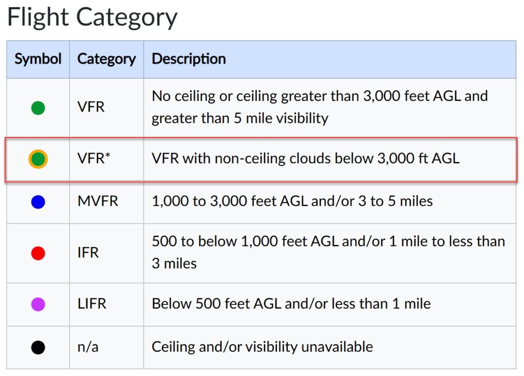 …and still show green VFR – because the scattered layer is not considered a ceiling.